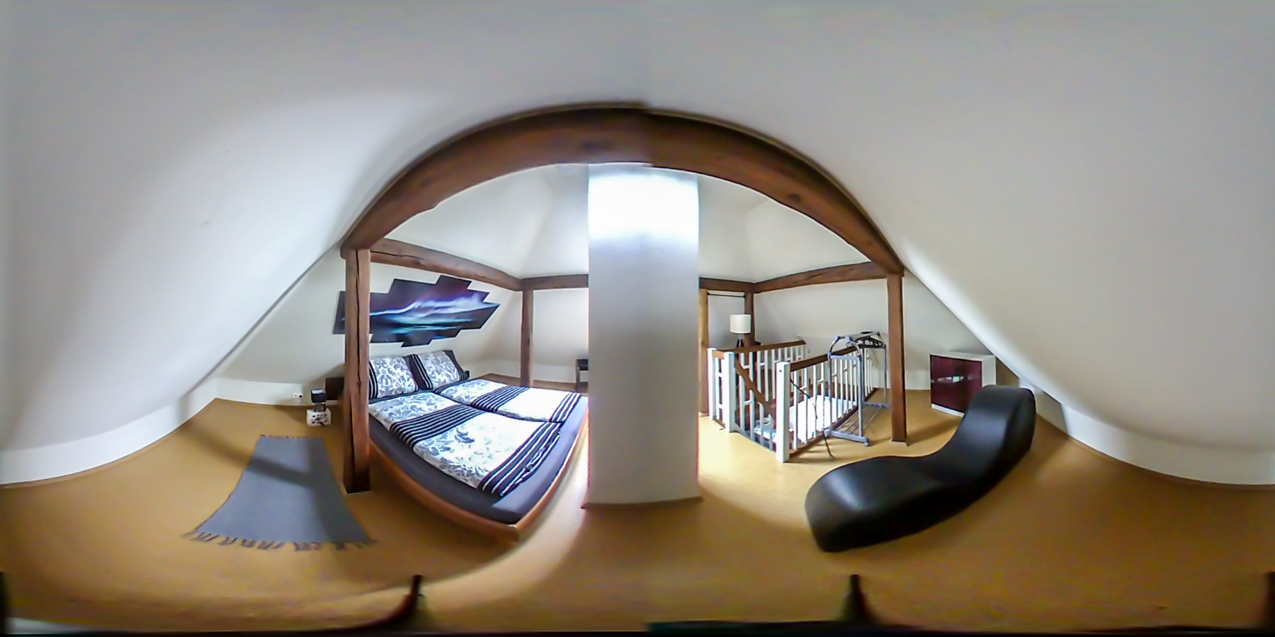 In unserem Schlafzimmer befindet sich ein großes Bett (Kissen, Decken und Bettwäsche inklusive). Außerdem findet ihr neben der erwähnten Kamasutracouch eine Liege zum Entspannen und lesen sowie Möglichkeiten zum Ablegen eurer Kleidung.